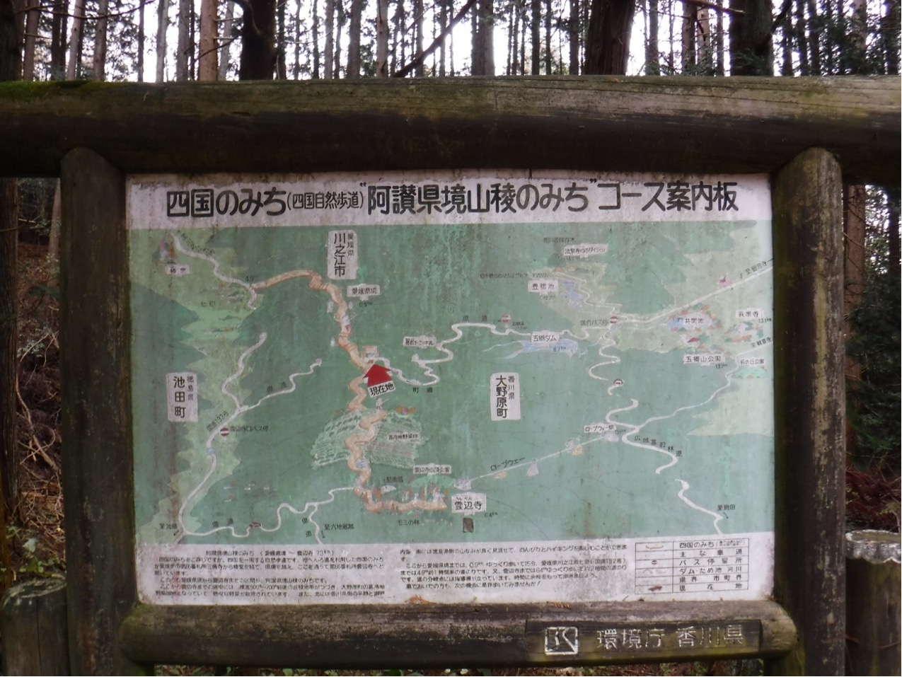 少し雨が降ってきたので全員リュックカバーを付け出発。雨が心配。遍路道を少し歩くと分岐に、左は三角寺、右に川之江方面に進む斜め道が続き、注意しながら進む。